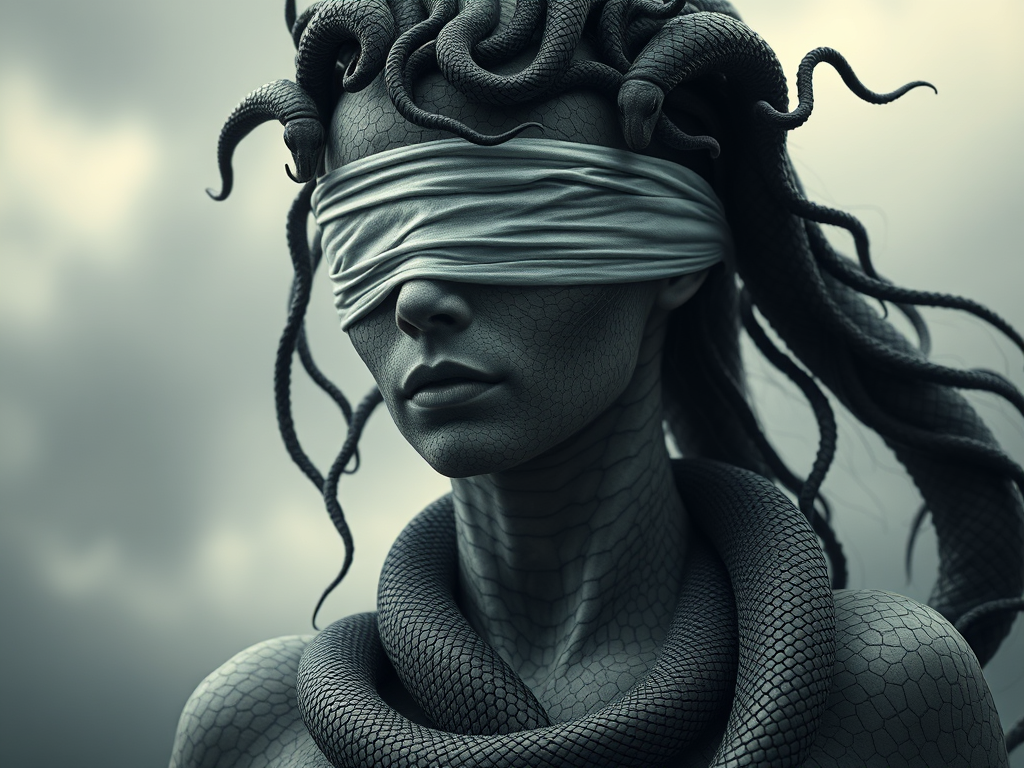 There were six gorgons, staked out and separated from each other. She had seen gorgons before, of course. Everyone had. But she had never before been allowed this close to one. She’d heard the stories. Women and gorgons didn’t mix, it was said. Something about the gorgons affected women’s minds. Made them wild, and crazy. Made them question things. Act unnaturally. Why, she had heard whispered at the beauty salon, a group of woman up north had bought a gorgon for protection at their community garden and they all turned homosexual. Started wearing slacks, and driving, and demanding that gorgons be freed.